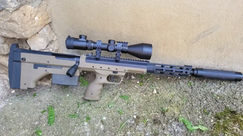 En externe, la répliques est équipé d'un canon 18 pouces, d 'un garde main Silverback Mlock, du silencieux sous licence Desertech ainsi que d'une lunette 3-13 / 56 Sutter (repro)