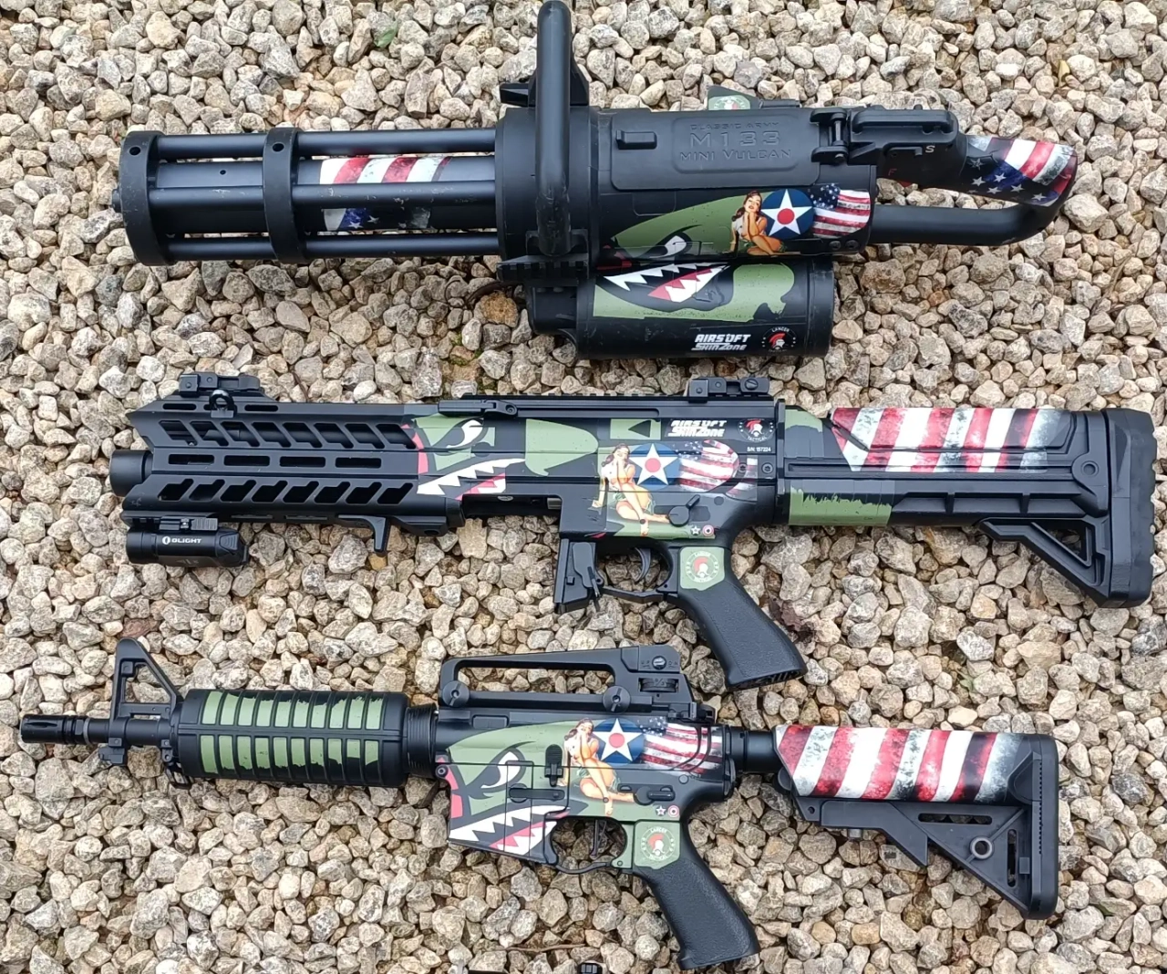 - M133 Vulcan minigun Aeg Classic Army + 4 traceurs inclus sur boitier adapté+ 2 batterie 11,1 inclus .