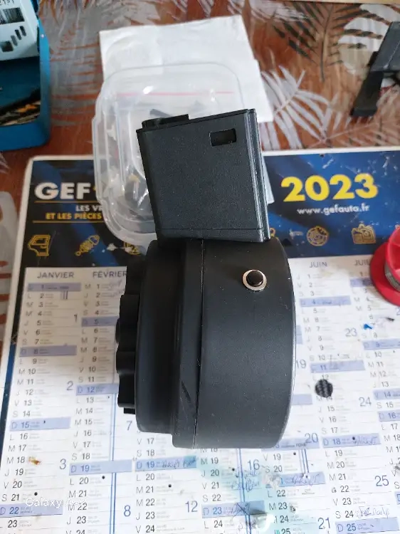 Le drum pour M4 fonctionne avec une pile 9V et est en bon état de marche.