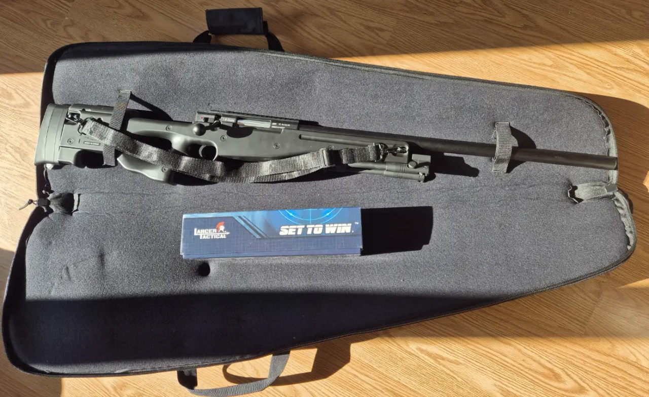 Réplique spring de fusil AW308 avec un chargeur, lunette, bi-pied, quelques billes en 0,36 et housse.