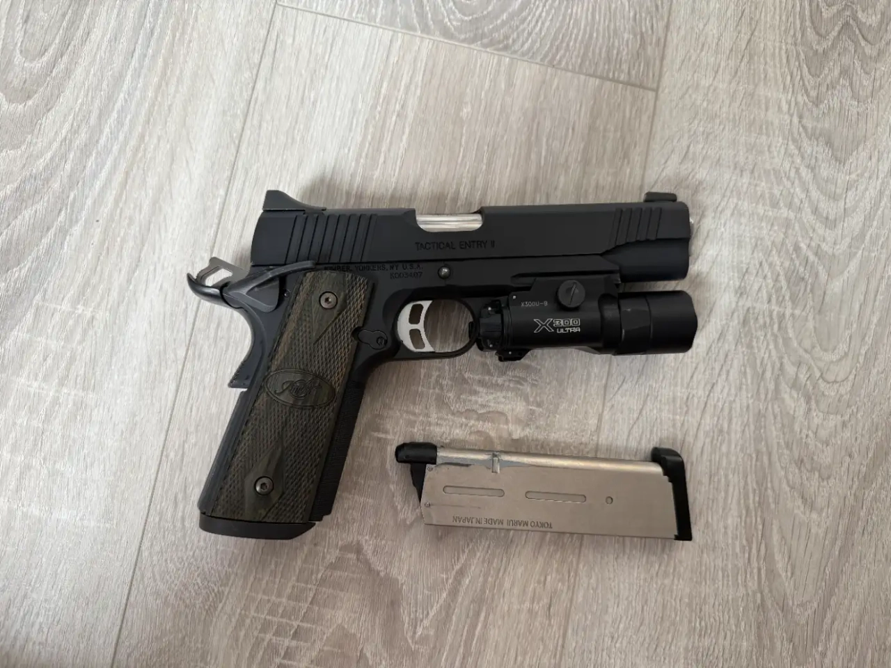Sur base de night warrior T.M, équipé d'un kit Hurricane kimber tactical entry II, joint hop-up (je ne sais plus la marque),Spring guide Nova silver, hammer nova 2-twone.