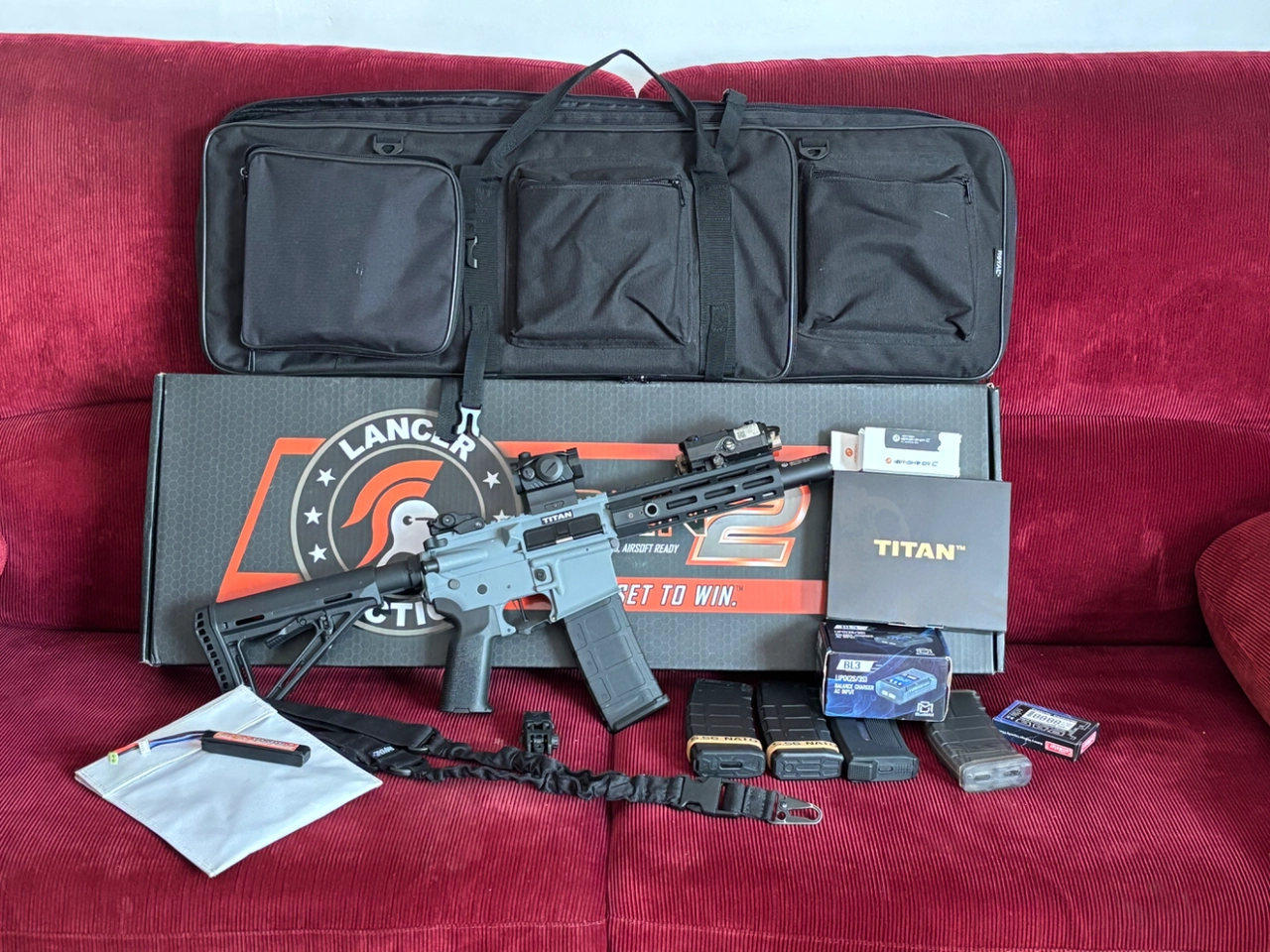 3 parti à son actif j’arrête l’airsoft elle est neuf elle est équipée d’un titan v2 basic