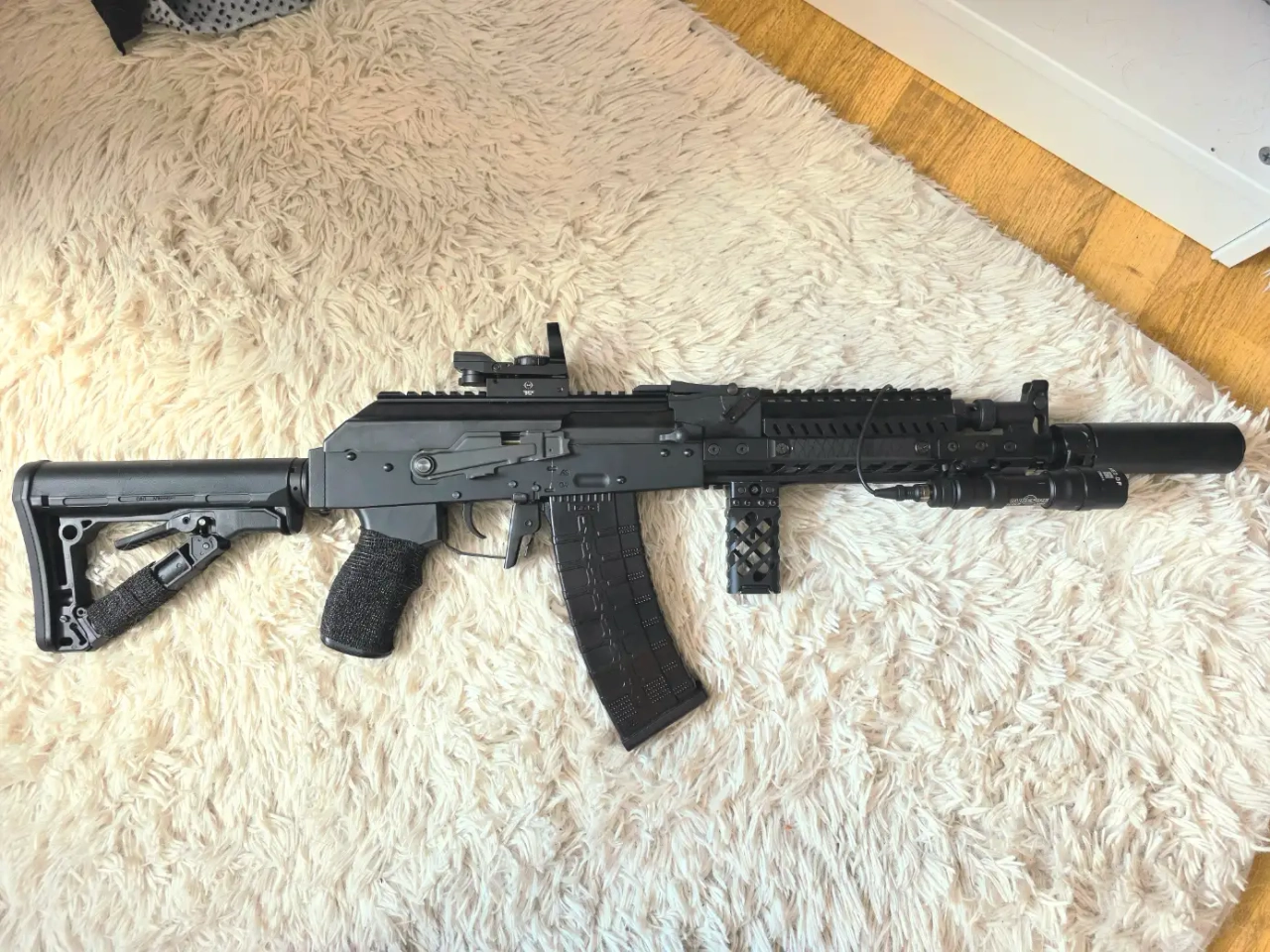Viseur, attache sangle, poignée, lumière et commande déporté, silencieux. Je fournir tout les équipements. Boîte d'origine avec.