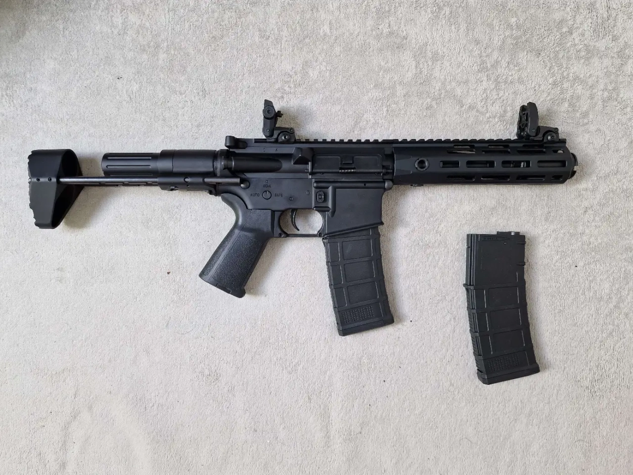 La réplique est dotée de pièces externes (Canon, garde main, Lower/Upper, détente, Buffer, levier d'armement, crosse) fabriqué en acier et alliage léger.
