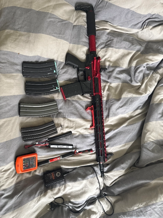 M4 servie 4 fois avec 4 chargeur 300 bbs plus 2 batterie lipo 7.4 et 11.1 un chargeur lipo et un 2 eme sans câble plus réplique marche