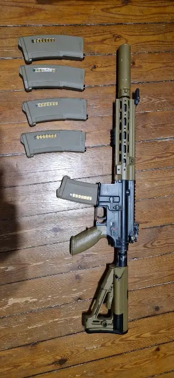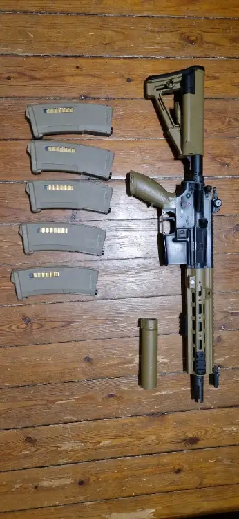 Je mets en vente une réplique HK416 EBBR Tokyo Marui Delta Custom en finition Tan/Noir.