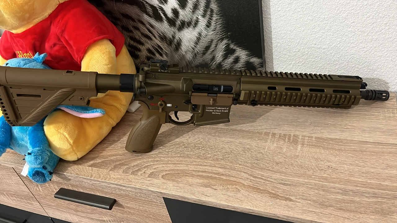 Je vends ma hk416a5 gbbr couleur ral8000 état neuf avec 4 chargeurs valeur 820€ le lot complet je la cède à 450