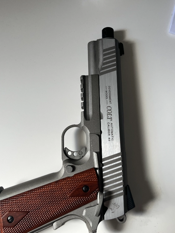 Réplique airsoft Colt 1911 Government, version CO₂, finition stainless, entièrement en métal.