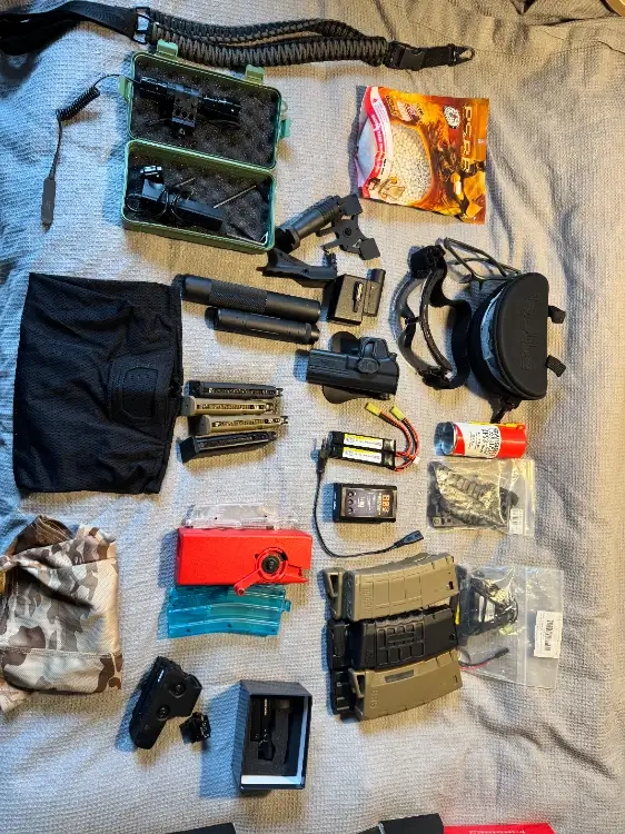 Bonjour, voici le lot que je propose à la vente. La M4 et le Glock17 ont seulement 3 parties.