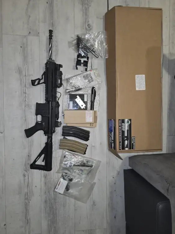Interne bloc hop up complet ra-tech bloc détente ra-tech et la cullasse doré ra-tech et le nozzle alu ratech avec npas fournis avec 4 chargeur et 2 chargeur neuf jamais ouvert plusse plein de pièce fourni avec plusse un trigger angry gun competition j'amais deballer.