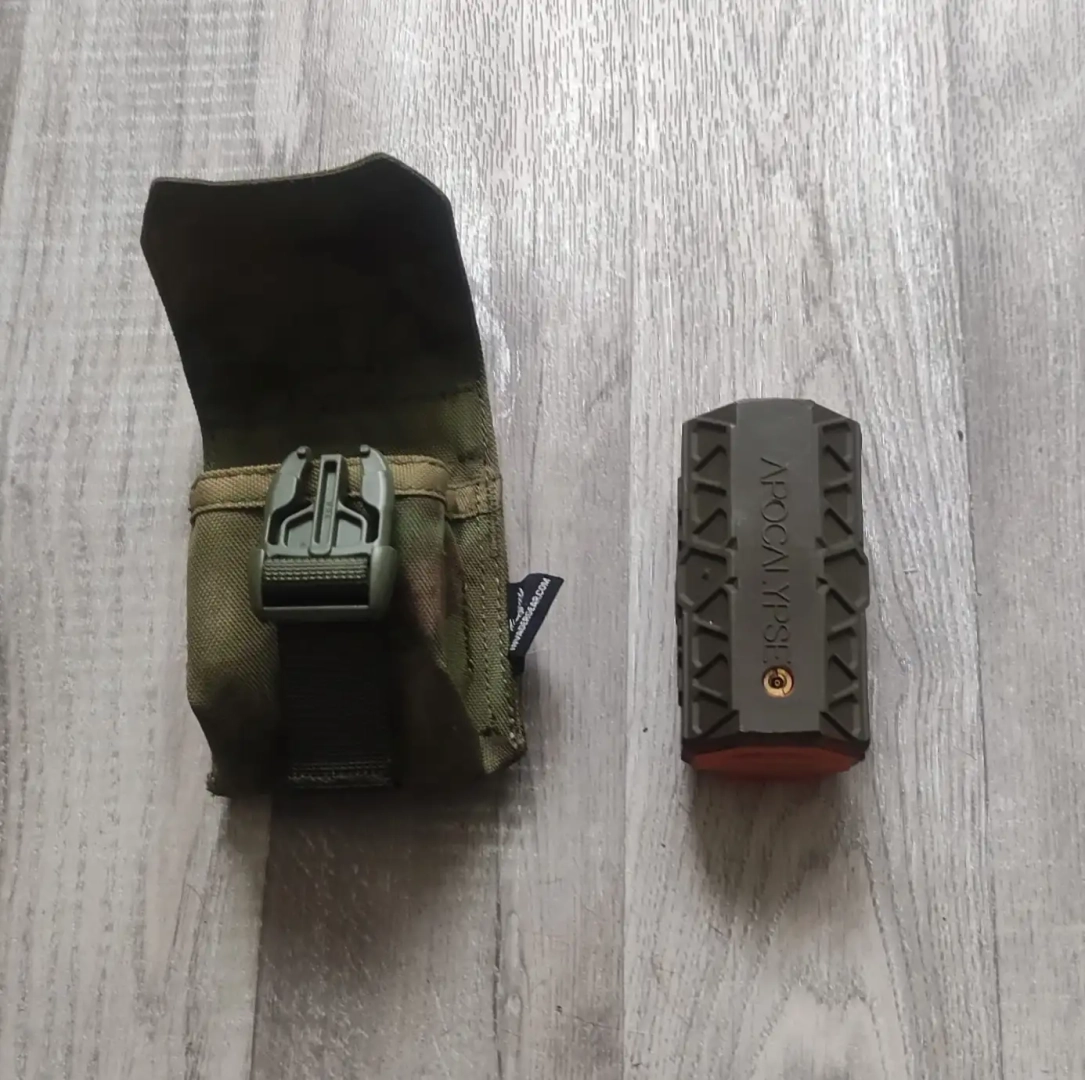 Je vends une grenade Storm Apocalypse quasi neuve et sa poche molle Invader Gear en Everglade ( ATACS fg).