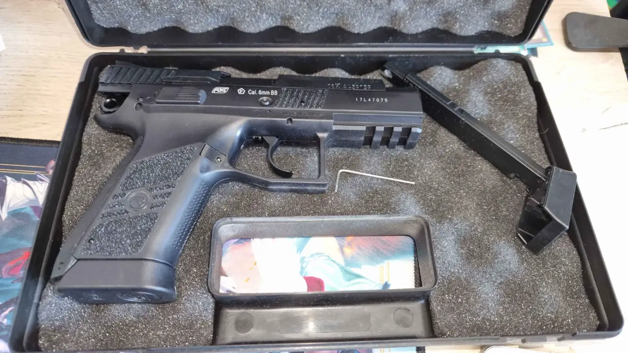 Je mets en vente ma réplique airsoft CZ 75 P-07 Duty, un modèle à propulsion CO2 offrant un blowback réaliste et une culasse métallique pour un rendu très proche d'une arme réelle. Elle est idéale pour les joueurs recherchant performance et fiabilité sur le terrain, avec une prise en main confortable grâce à son design ergonomique.