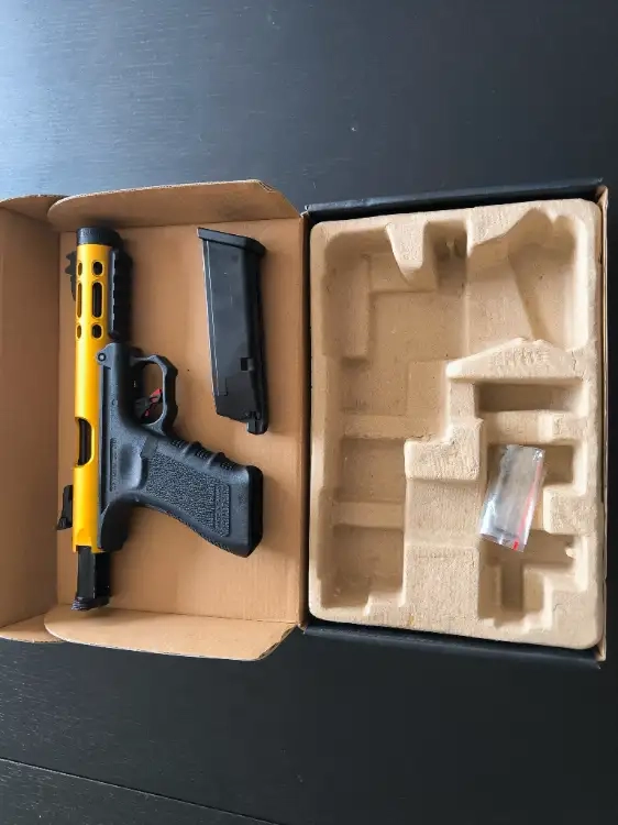 Il est vendu avec sa boîte d'origine, un rail et son chargeur.