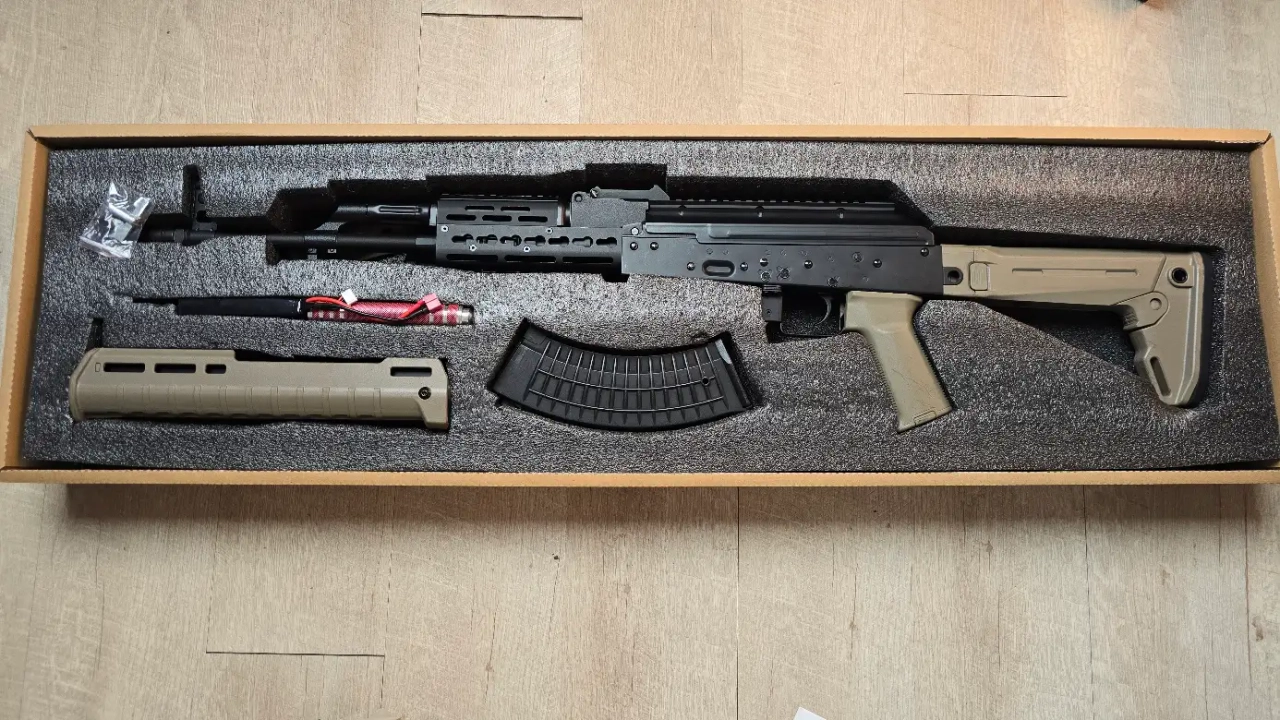 Avec 3 chargeurs dont 1 hi-cap de 400 billes et une batterie 11,1V neuve.