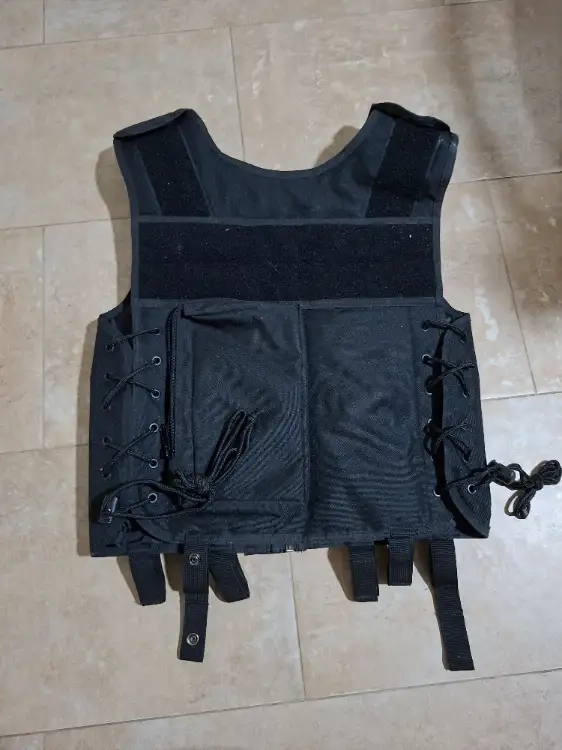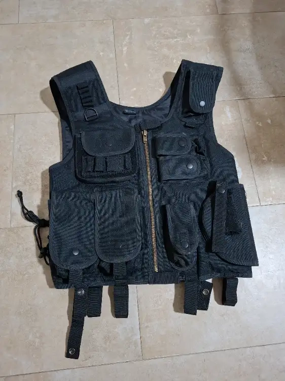 Gilet Tactique Noir avec holster, très peu porté. Taille environ en L