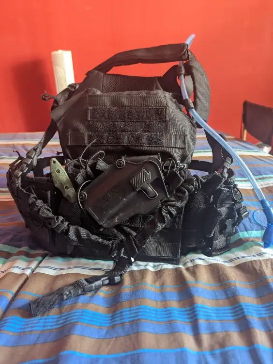 Gilet tactique 2 plaque, casque système anti buée novritsch, 2 grenades, 2 talkie walkie, pistolet redwings.