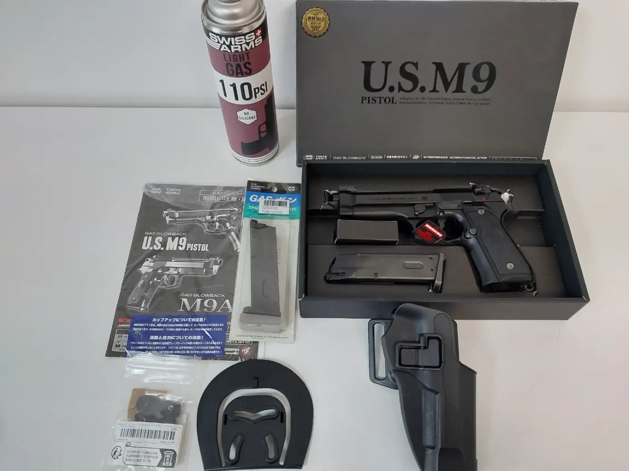 M9 Tokyo Marui TBE/Excellent état. Avec support ceinture jamais utilisé, 2 chargeur dont 1 utilisé 1 fois, les deux chargeurs sont nickel et ne fuit pas.