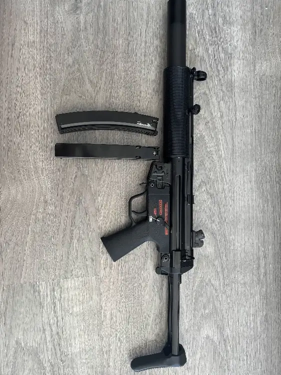 Bonjour je vends mon MP5 SD3 de chez WE avec deux chargeurs (45 bbs), jamais utiliser en partie, seulement dans le jardin donc max 100 billes tiré avec.