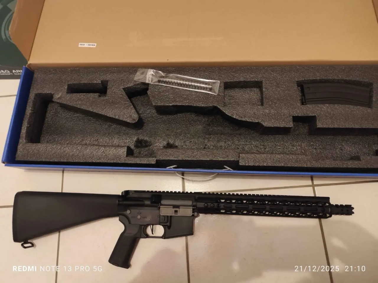 Interne upgrade avec joint hop up 70° guarder, moteur hi-torque long SHS et gearbox ATM V2 renforcée QD (R), programmable avec rafale de 3 ou 5 en remplacement du mode auto, et binary ou sniper (délai de 2s) en remplacement du semi.