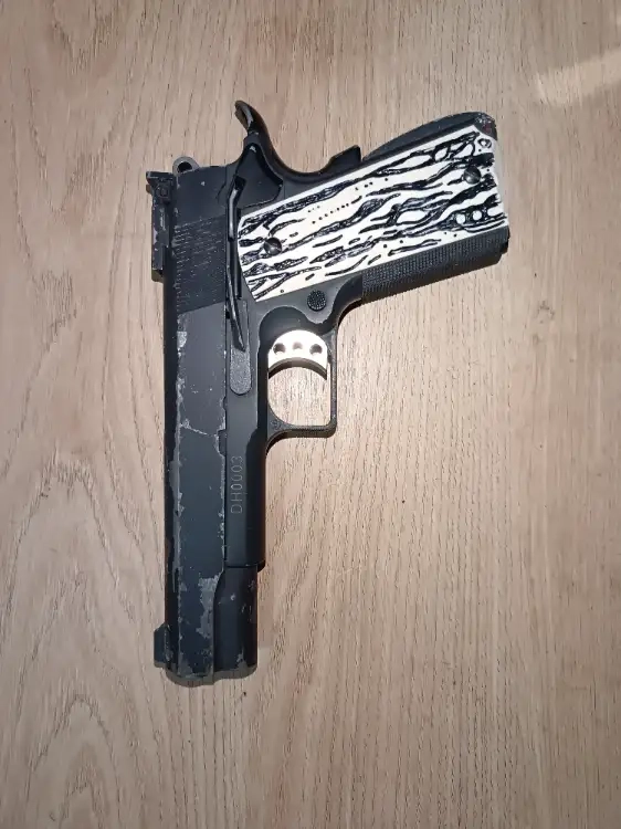 Bonjour à tous ! Je vends ici un colt 1911 we qui fonctionne bien ! La réplique a un corps en métal avec un canon chrome Seul soucis la peinture qui est partie au fil du temps...