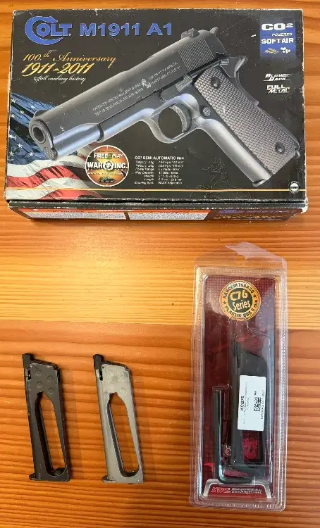J'ai aussi un autre M1911 a gaz non-blowback avec son chargeur que je vous file avec.