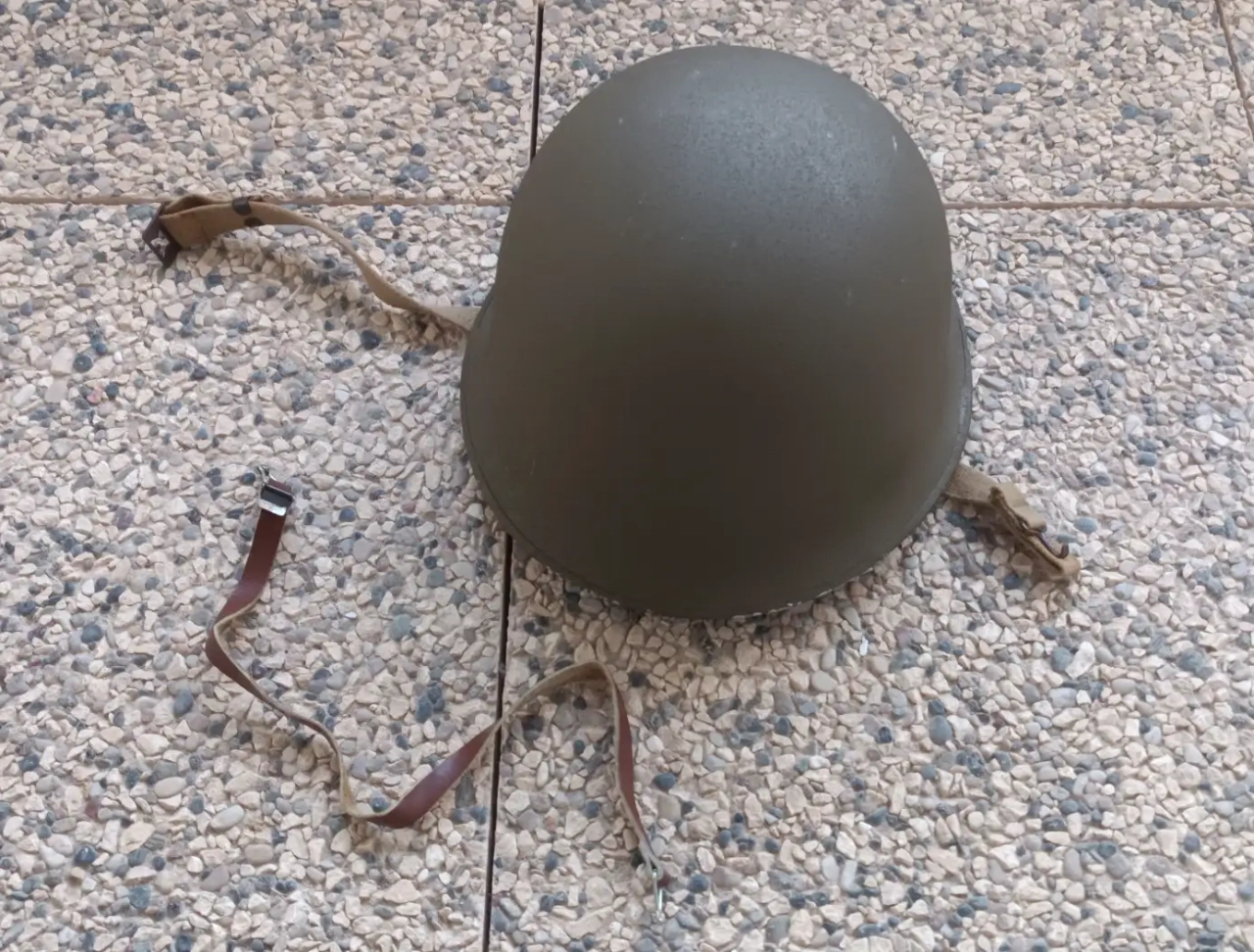 Casque de l'armée française, modèle 1951, taille R, similaire au casque M1 américain durant la WW2. Casque intérieur plastique de 1954, et casque en métal de 1962, fabriqué par la MPMP de Marseille.