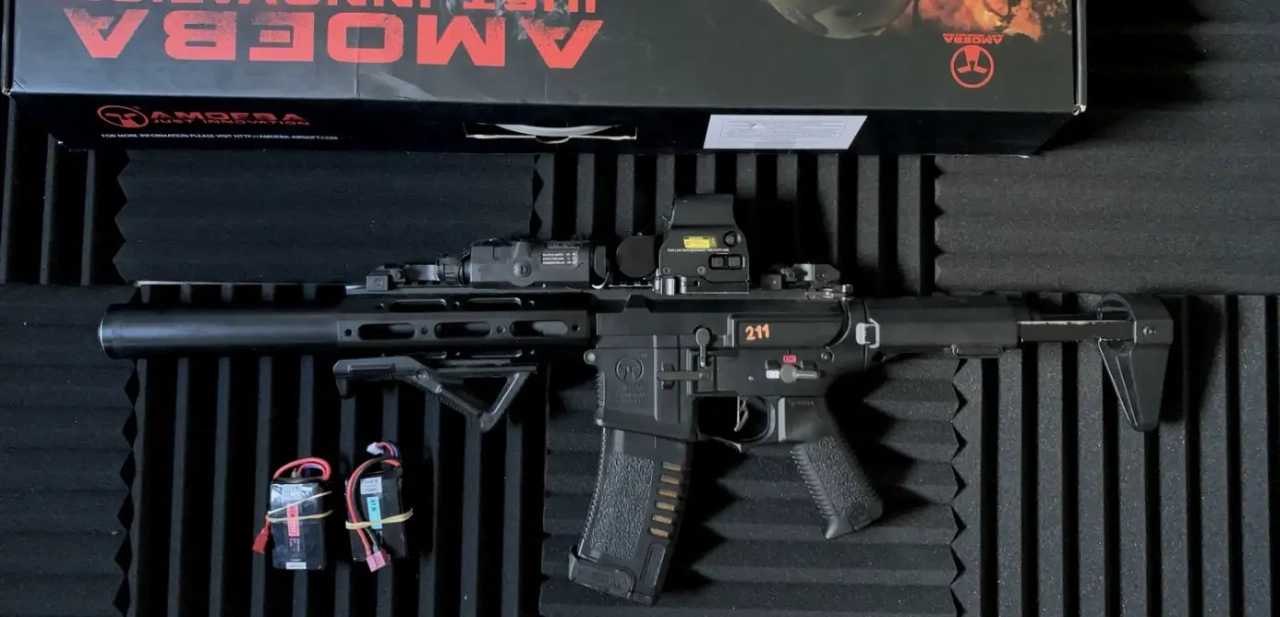 Vends Amoeba Honey Badger AM-014 en très bon état interne malgré les traces d'usures sur les arrêtes de crosse. Réplique prête à jouer, vendu dans sa boîte d'origine.
