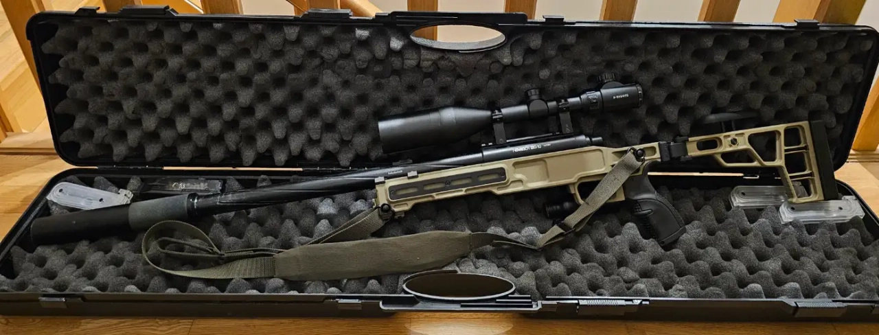 Il est équipé d'une lunette retroéclairée x3-x9, un silencieux avec mousse novritsch et une sangle deux points QD.