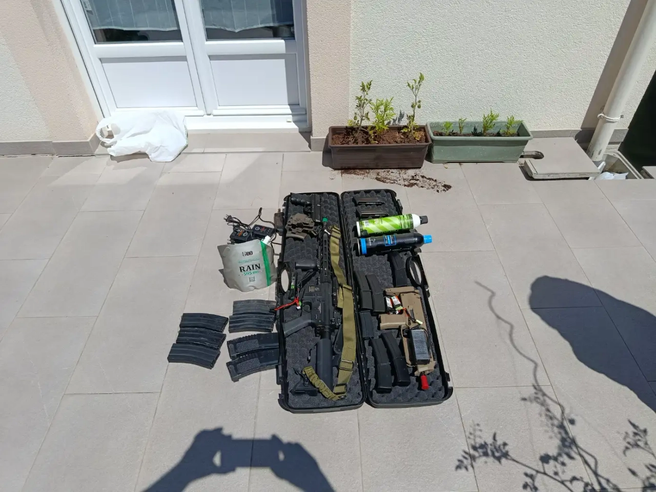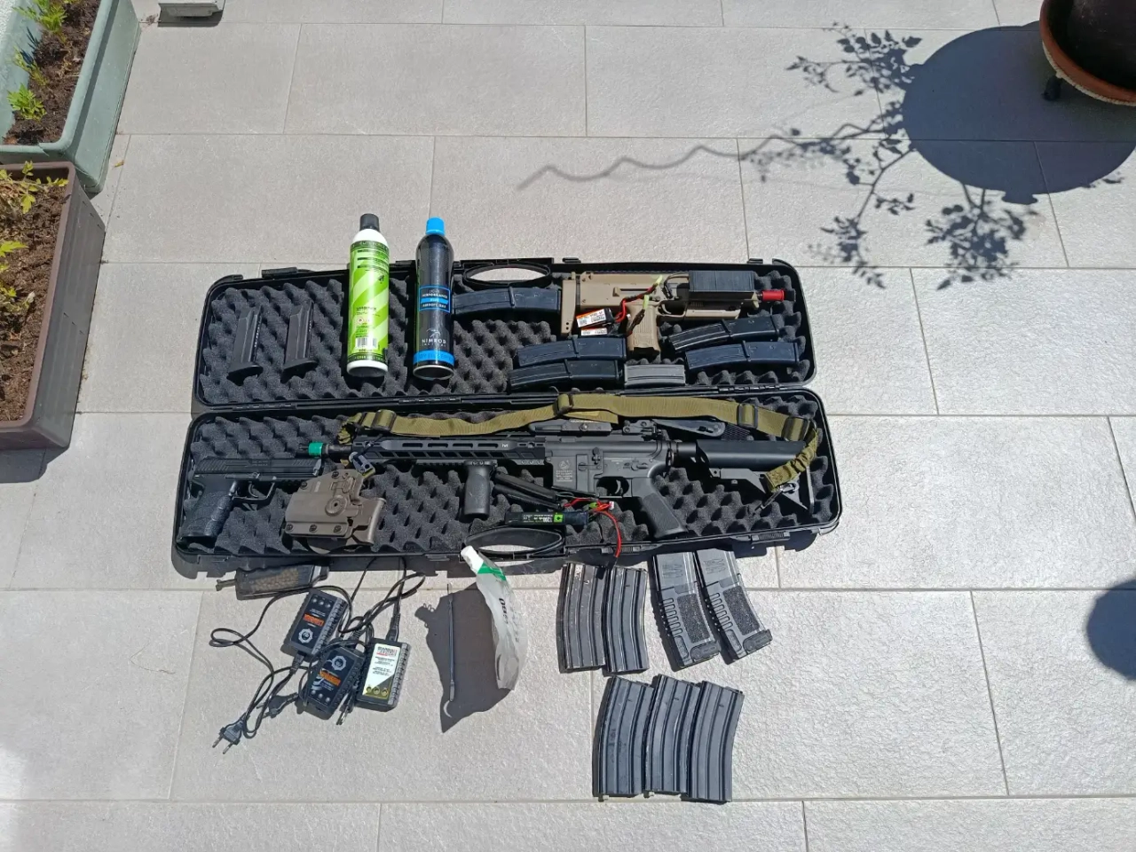 -un fusil d'assaut M4A1 avec 2 batteries et 4 chargeurs mid cap/ 3 chargeur high cap.