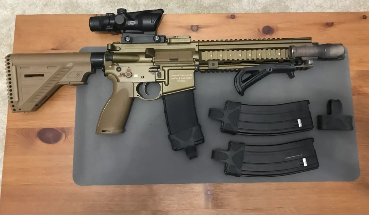 Vendu avec 3 chargeurs, une optique ACOG (x4), une lampe tactique et une poignée tactique. Boîte comprise.