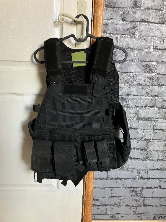 - Deux gilets tactics de couleur noir. Un qui est modifiable