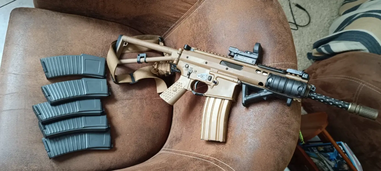 Elle est vendu avec 6 chargeur dont certains fuit. un viseur point rouge special ops edition et une poignée.
