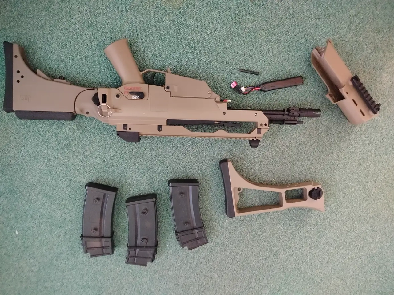 Je souhaite vendre mon G36c Tan, en interne la gearbox est renforcée sur roulement, canon de 6.03 et cablage T-dean avec fusible pour supporter les batteries lipo.