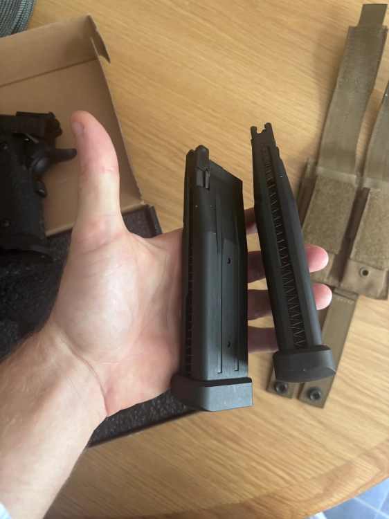 Je vend ma réplique de poing co2 gaz C’est un colt 1911 custom variante babayaga de la marque src avec 2 chargeur en plus