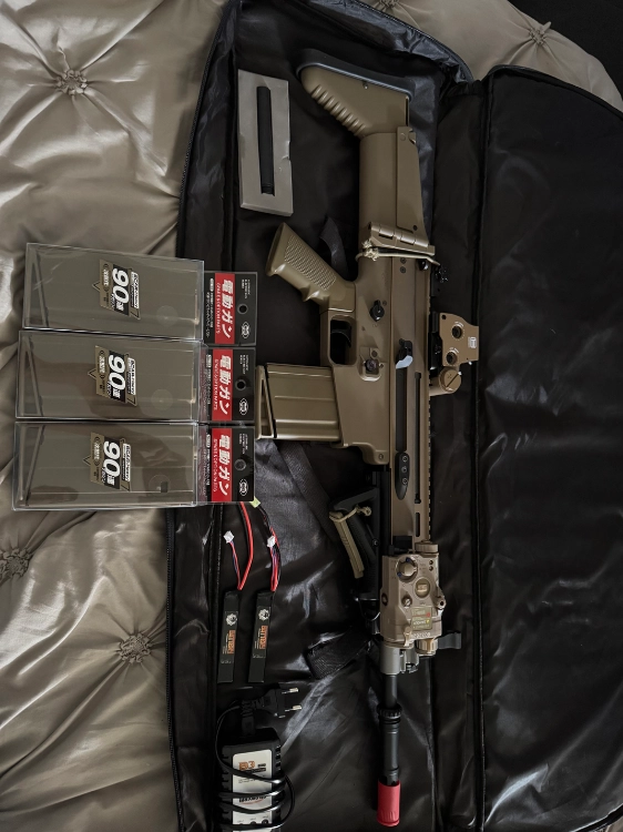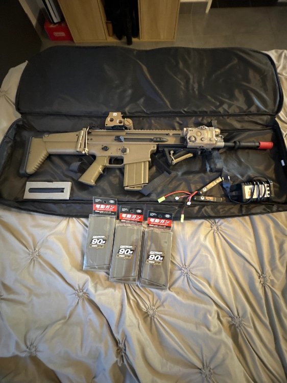 Bonjour je vend ma réplique Tokyo Marui modèles Scar-h EBB avec quatre chargeur