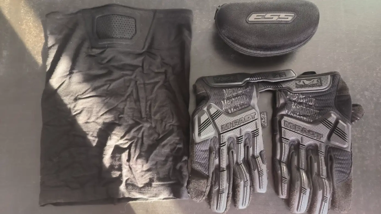 Equipement de protection lunettes ESS gant et tour de coup a protection dentaire.