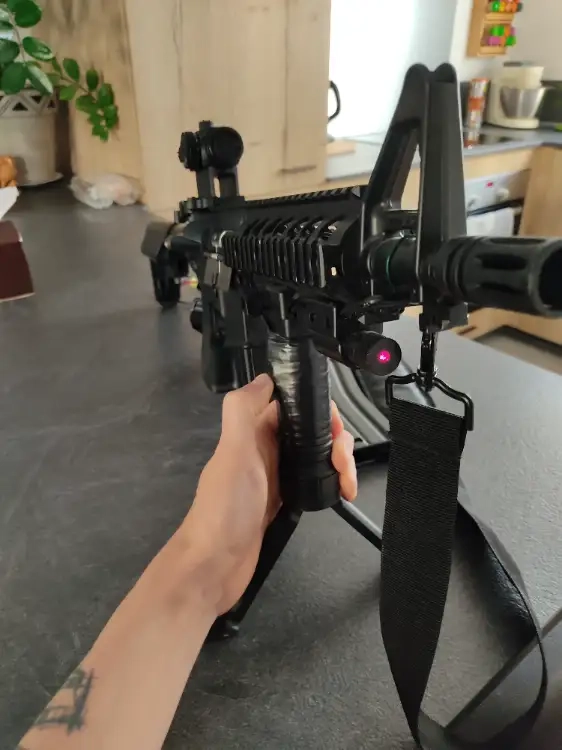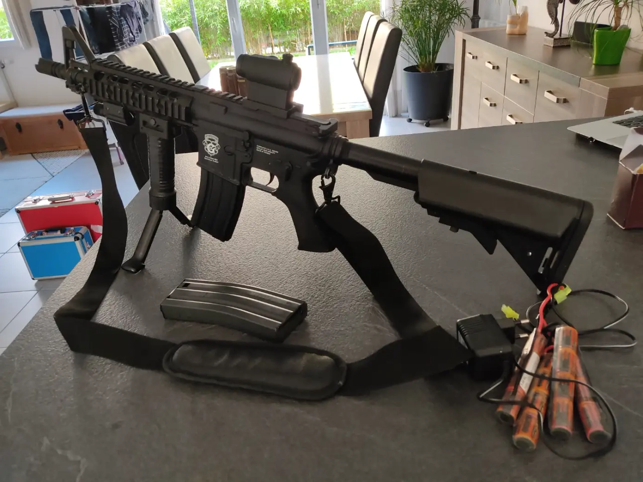 Vends M4 électrique avec 2 chargeurs, 2batteries, laser, viseur point rouge, Bipied rétractable, sangle et sac de transport swissarme