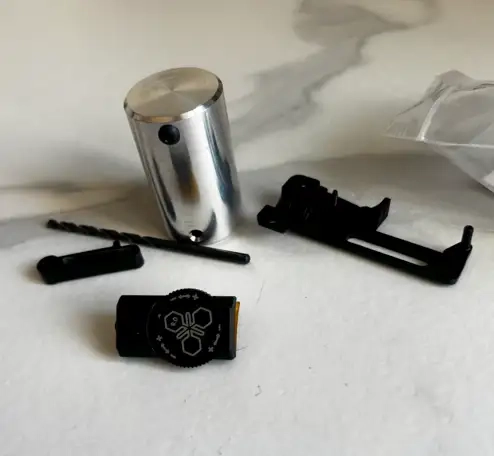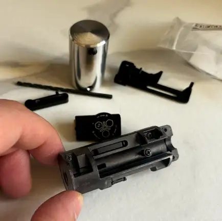 Il y a aussi le patron et la mèche pour percer le canon externe.