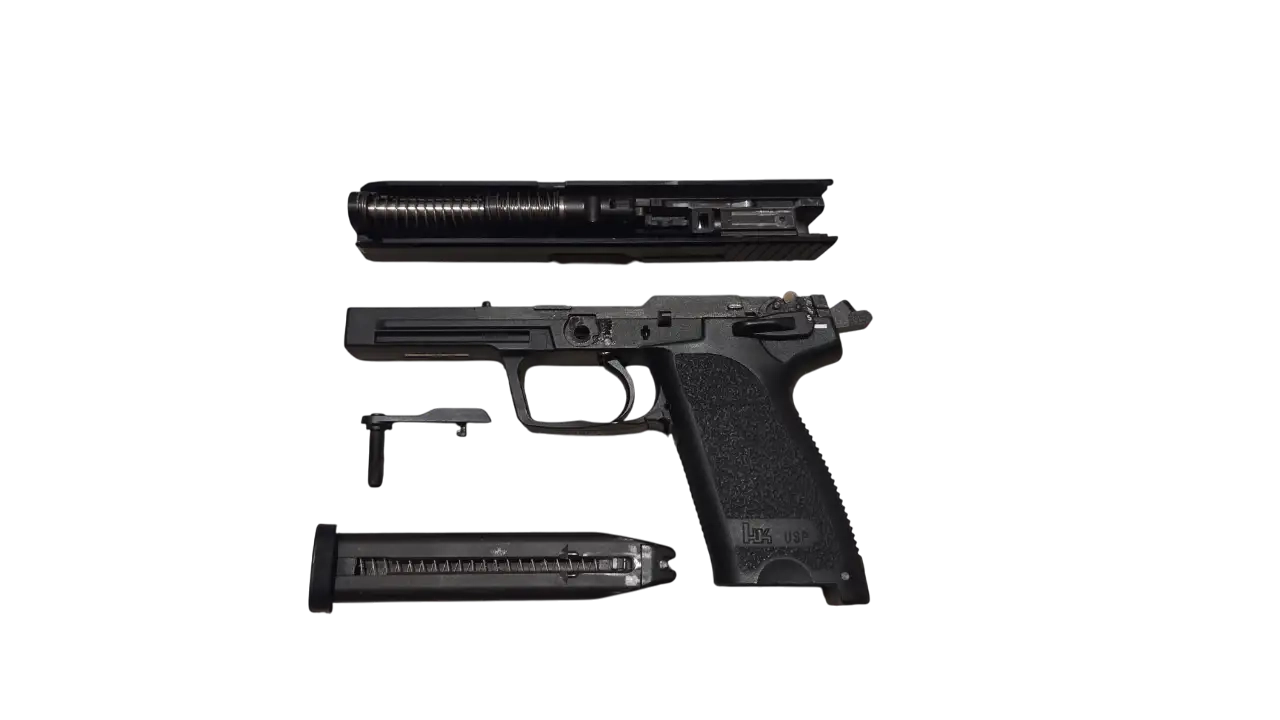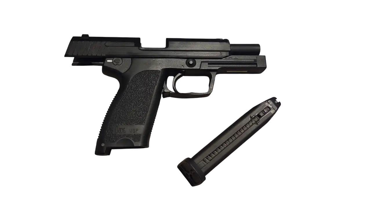 Réplique Blowback à Gaz de l’USP.45 par KWA et Umarex. Conçu en Full Metal sous licence Heckler & Koch. En très bon état, fonctionnement impeccable et doté d’un excellent kick et de performances impressionnantes en 0,32g. Entretien fait et chargeur sans fuites.