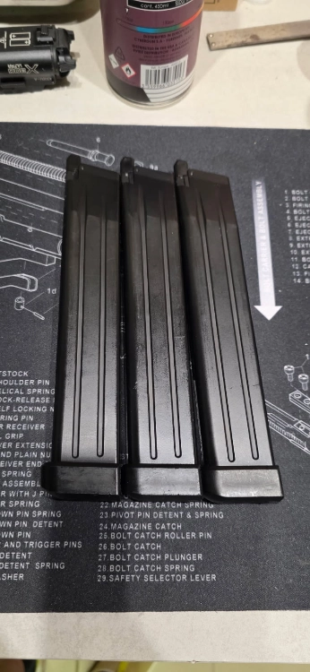 Je vend 3 chargeurs long hi capa 50bb.