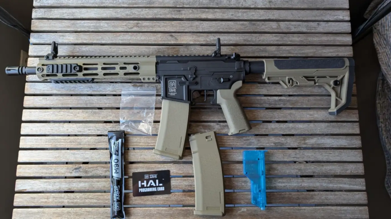 La réplique dispose d'un changement de ressort rapide ESA, un ETU programmable à la queue de détente HAL, un moteur Brushless Dark Matter, un bloc hop up Magnus et d'un joint hop up Helium.