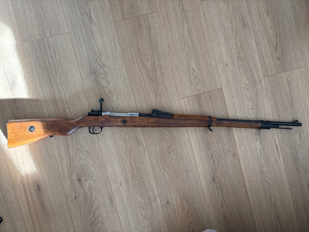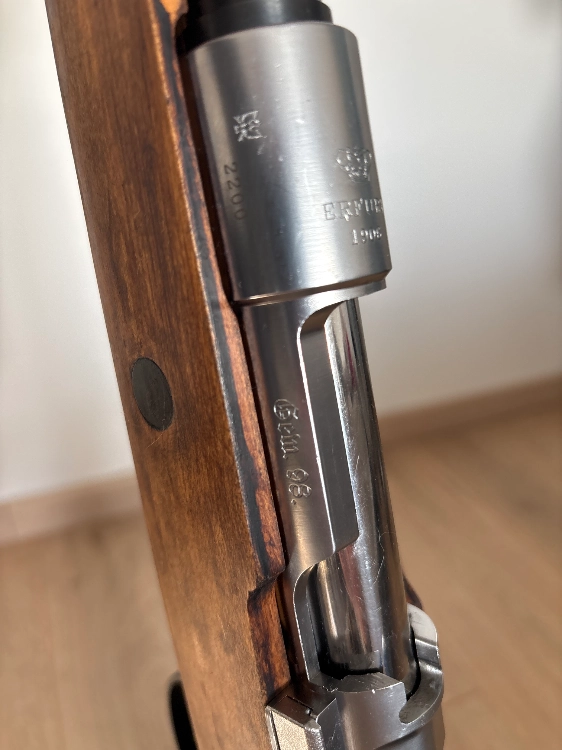 Construction full acier excepté la culasse en alliage. Pour patiner cette partie, je recommande le birchwood casey aluminium black ( tutos dispos sur YouTube sur comment faire et sur le résultat) car leur dernière production de gewehr avait vocation à reproduire des G98 sorties d’usine (chromés et bois très clair).