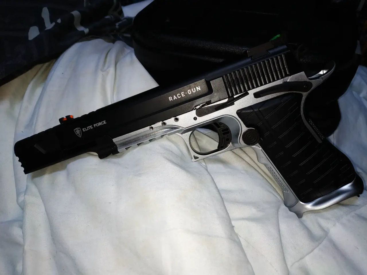 Vend replique de poing Racegun Elite Force neuf, fournie avec sa boite d'origine, cle, doc.