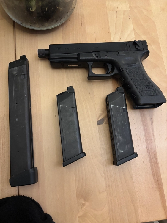 Glock 18c Tokyo marui gaz fonctionne très bien en bon état 2 chargeur et un chargeur allonger tir full ou semi