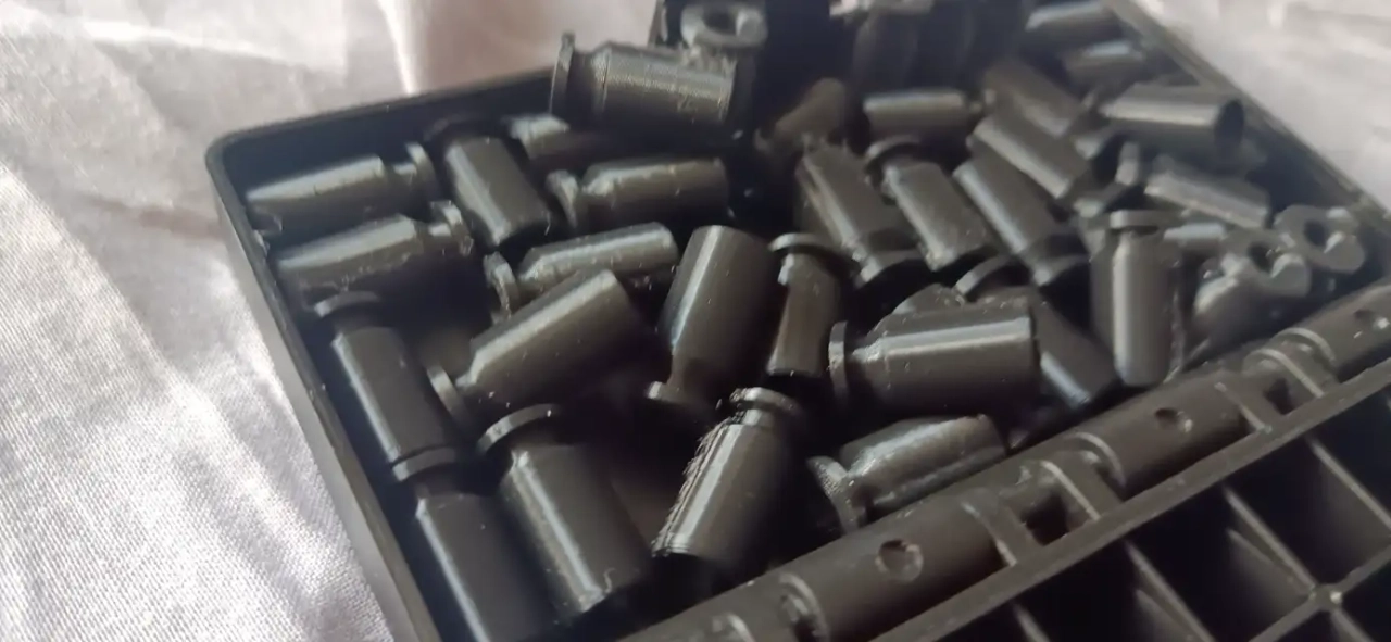 Version 3D sans joint torique ; les billes tiennent par retention par la douille elle même, il suffit ensuite d'insérer les douilles dans le chargeur ou la chambre, et la réplique est prête à tiré