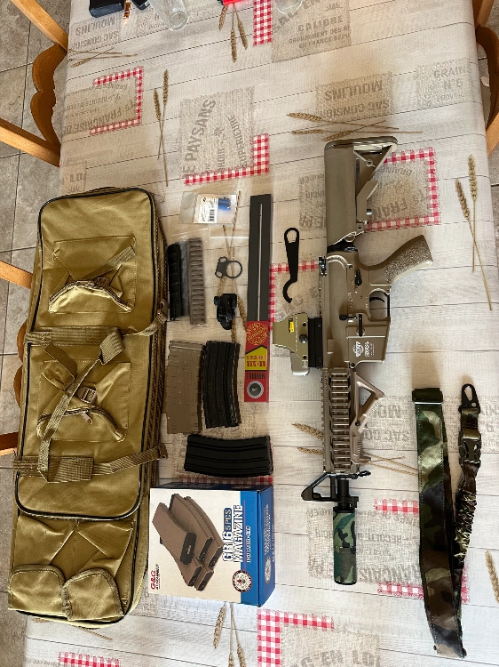 Je vends ma réplique G&G CM16 Raider TAN avec son lot d’accessoires.