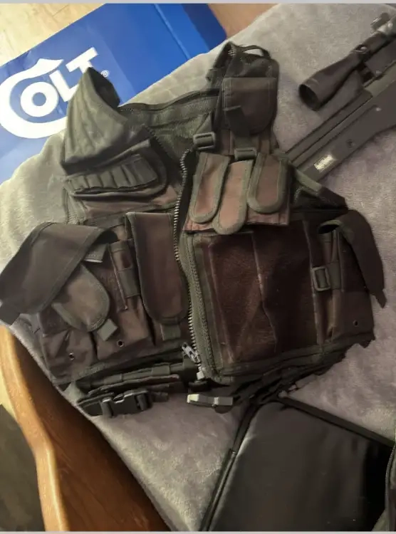 1 replique m4 de la marque colt full equipe viseur point rouge et poignée verticale avec 5 chargeur (4 sont des mid cap)et ça house de rangement
