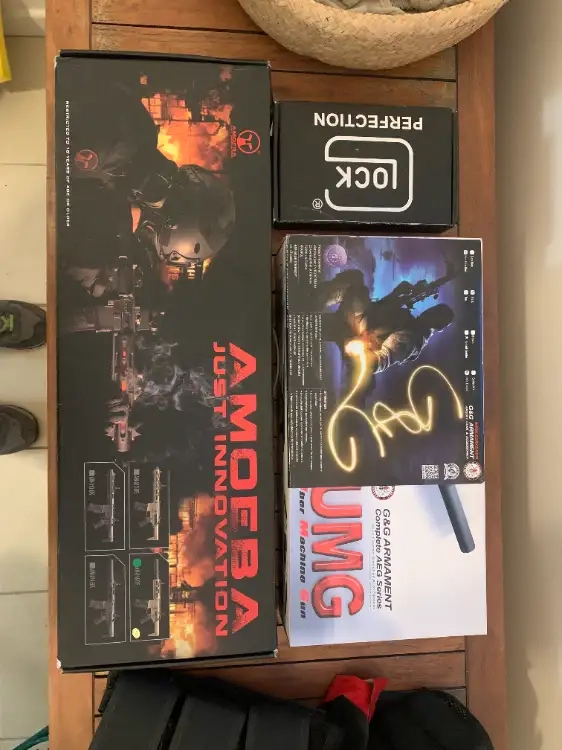 Je m'en débarasse car j'arrête l'airsoft mais ils fonctionnent tous très bien. et j'ai les boîtes.