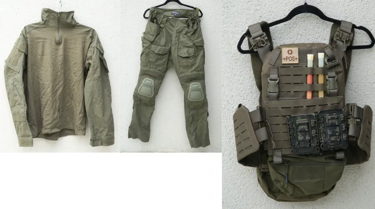 Haut + bas Idogear, 2 paires de gants (noirs M, kaki L)