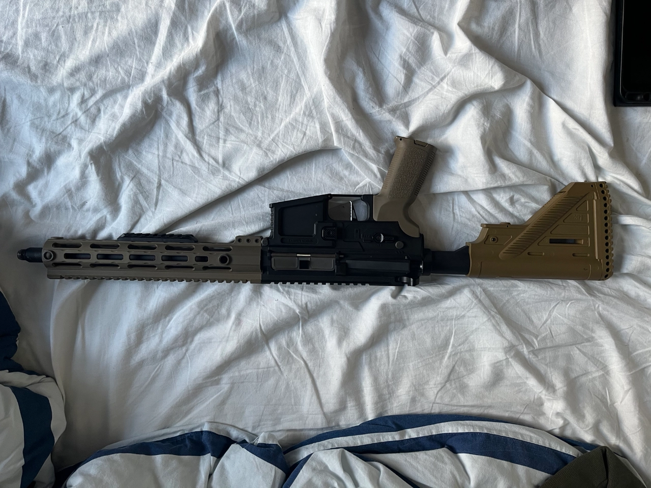 Avec un bloc Maax et un canon de précision en 6.02 et le bloc d’origine, une détente speed a coter, un etu d’origine, une poignée, une batterie et 3 chargeurs ou plus si besoins pr un petit plus